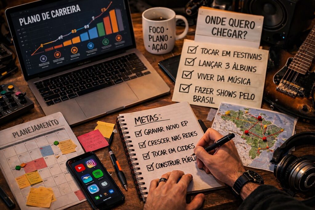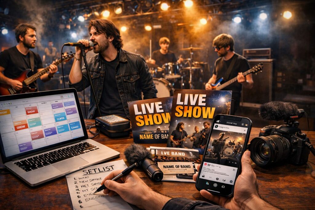 Você vai aprender a montar e definir shows e criar materiais midiáticos para divulgar sua banda.