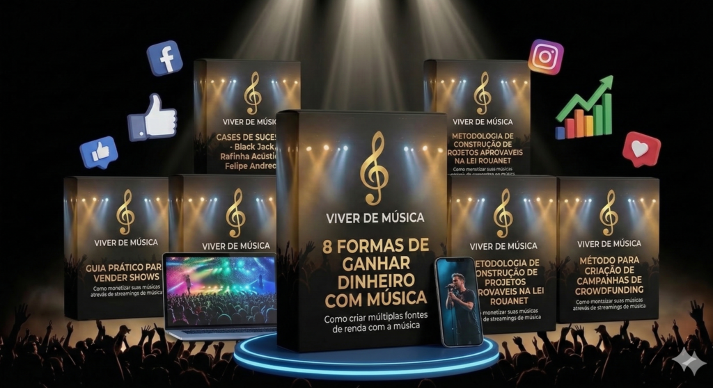 Você terá em mãos um passo a passo totalmente explicado, com cada uma das 8 formas de ganhar dinheiro com música, te ajudando a se capitalizar em poucas semanas. Você aprenderá na prática a gerar renda com shows, músicas, produtos, patrocínio, publicidade, Lei Rouanet, financiamento coletivo e prestação de serviços.